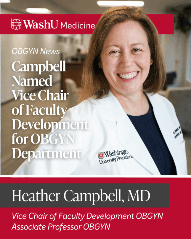 In addition to her clinical excellence, Dr. Campbell is an exceptional educator. At the University of Utah, she excelled in teaching medical students, residents, and fellows, serving as Clerkship Director and also as Vice Chair of Education from 2019-2024. She developed an innovative online curriculum for OBGYN residents that is tailored to specific rotations and levels of training. Dr. Campbell has mentored numerous residents and MFM fellows, serving on several master’s thesis committees. She has been nominated twice for the Leonard W. Jarcho Distinguished Teaching Award and received the Gold Star Teaching Award for Outstanding Clerkship Educator for three consecutive years from 2019 to 2021. Most recently, in Fall 2025, Dr. Campbell was inducted into the Academy of Educators at WashU Medicine.