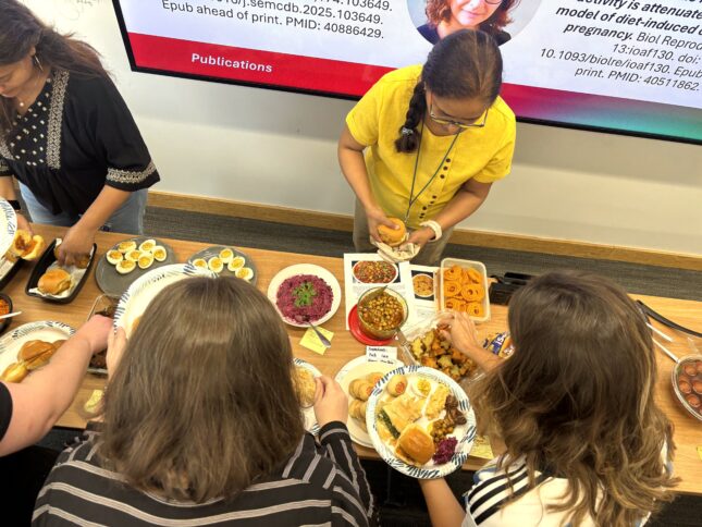 The OBGYN Center for Reproductive Health Sciences (CRepHS) hosted a vibrant “Around the World” themed collaboration event. The potluck celebration highlighted the rich diversity of CRepHS team members, with attendees sharing a variety of cultural dishes, ranging from entrees to snacks and desserts. As attendees enthusiastically sampled the delicious offerings, many shared personal stories behind their recipes. In total, the event showcased that CRepHS team members hail from more than two dozen countries, reflecting the global reach of our department.