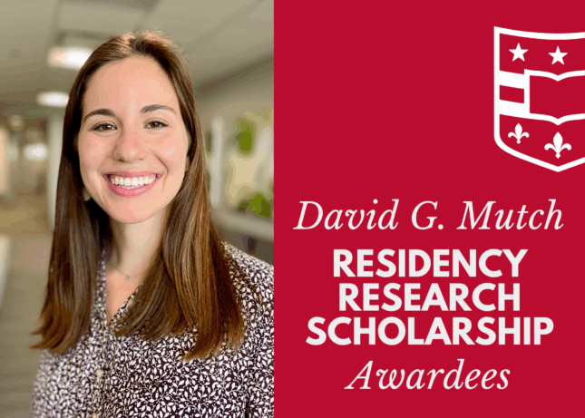 Resident, Dr. Sarah Cohen, was awarded a Dr. David G. Mutch Residency Research Scholarship. Congrats on this accomplishment!